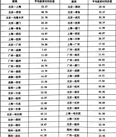 根據(jù)具體情況及計算的需要,選取了我國民航旅客運輸量最多的100條貨代航線,按照前面介紹的改進(jìn)的民航旅客時間價值算法分別計算了各航線的時間價值,并進(jìn)行了推廣應(yīng)用。
