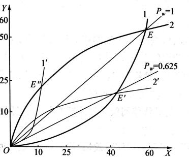 如果我們對任一方的供給曲線做統(tǒng)計預(yù)測或回歸預(yù)測,比如,美國國際快遞的供給曲線1,一方的貿(mào)易供給數(shù)量會沿著這條供給曲線一直走下去,按經(jīng)濟規(guī)律來說,在一定貿(mào)易條件下一旦達(dá)到均衡點E或E’,雙方貿(mào)易不再增長。但是,在無均衡點E,E'的約束下,這種預(yù)測會一直延續(xù)下去??赡茉?0年后突破全世界的極限。該問題下,一且一方比如美國采取貨幣貶值或者其他引起國際快遞價格變化的做法,則兩國商品交換的發(fā)生變化,貿(mào)易貨運條件發(fā)生變化,這時,美國的供給曲線1已經(jīng)脫離初始軌跡,發(fā)生了旋轉(zhuǎn)位移,并與貿(mào)易伙伴方的供給曲線2交于新的均衡點E’處。而依據(jù)所取得的數(shù)據(jù)作出的線性回歸預(yù)測結(jié)果,必然遠(yuǎn)遠(yuǎn)脫離真實情況。