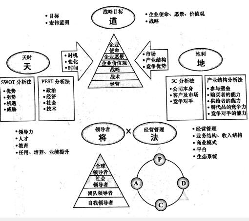 當(dāng)然,現(xiàn)代管理學(xué)中也有能實(shí)現(xiàn)相同效果的理論框架。但是,沒有哪種理論能夠有效地抓住上述五個(gè)要素,并將其視為一個(gè)有機(jī)的整體。我認(rèn)為,將五要素法和基于國家、產(chǎn)業(yè)、貨代企業(yè)、人的四層級(jí)分析法相結(jié)合,就可以透徹地解析亞馬遜的貨代企業(yè)戰(zhàn)略。首先,我們將道、天、地、將、法這五個(gè)要素與貨代企業(yè)經(jīng)營的不同方面一一對(duì)應(yīng)起來。
